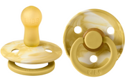 The collection is unique in many regards, but mostly since every pacifier is different due to the coloration. All colors are based on our best-selling colors, mixed with our all-time favorite 'Ivory' - giving the pacifiers a soft and subtle feel to the edgy tie-dye look.