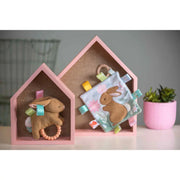 BABY TEETHER RATTLE: Soft toy rattle with teething ring is ideal size and shape for little hands; rattles with a gentle shake, measures 6 inches BELLA BUNNY: Fabric rattle is a white bunny with rosy cheeks and pink floral ear trim; embroidered eyes for total softness COMFORTING BEADED SILICONE: Soothing sewn-in teether is BPA, PVC and Phthalate free; teether feels good on baby's gums, comforts teething babies and provides sensory stimulation MACHINE WASHABLE: Wash in cold water in mesh laundry bag on gentle cycle, air dry; soft toy made to strict quality standards to meet or exceed US safety requirements