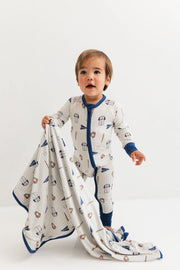 Hit a home run with our Baseball Collection, designed for little sluggers who love the game. Featuring classic baseballs, bats, and bold red-and-blue accents, this all-American print brings big league charm to cozy pajamas and everyday playwear. Made with our signature soft, breathable fabric, every piece keeps your kid comfortable whether they’re rounding the bases or winding down for the night.