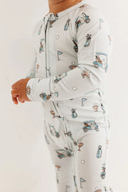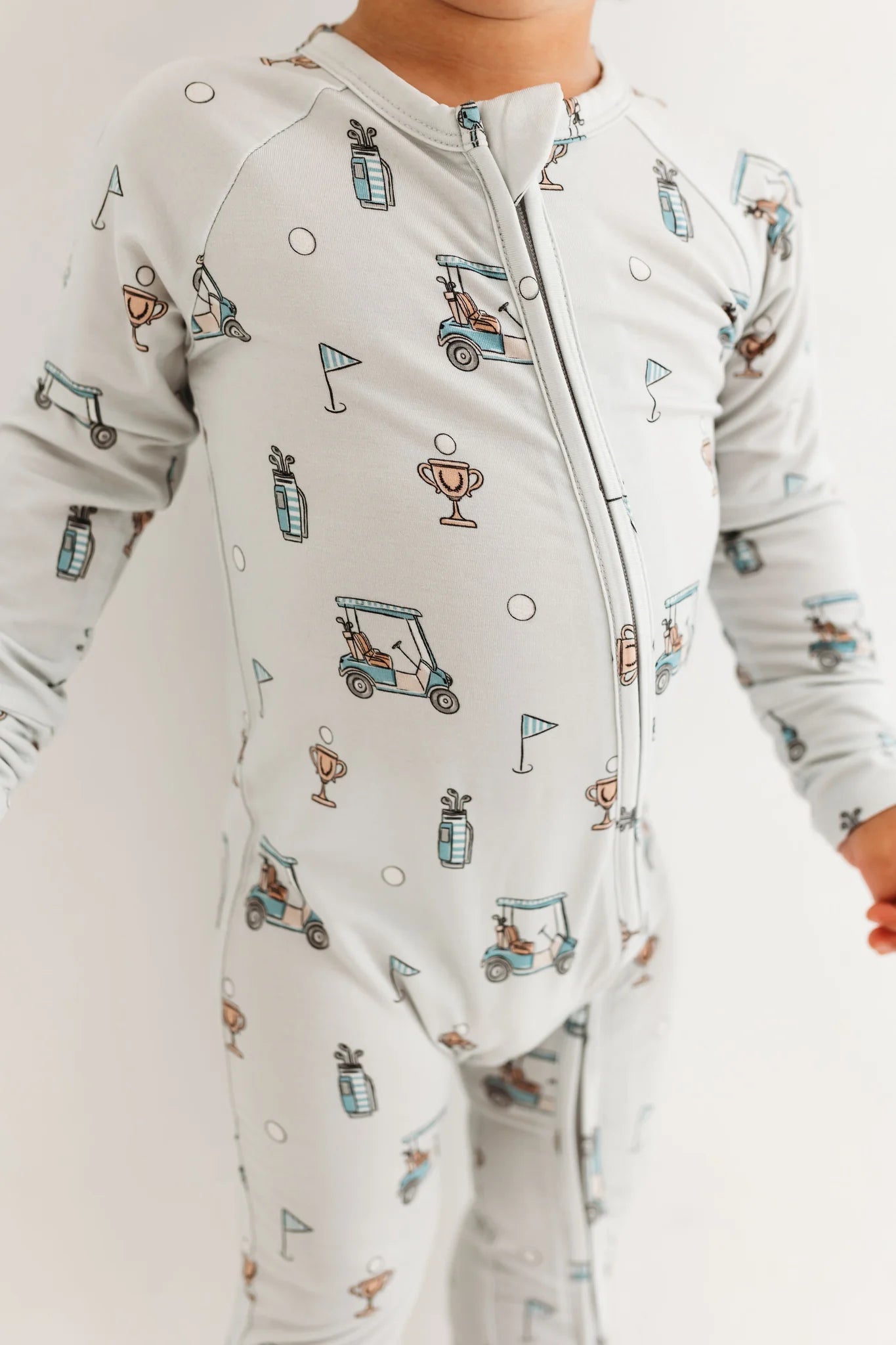 Get ready to hit the green in style with our Golf Collection, featuring playful golf balls, tees, and classic country club charm. With soft greens, cool blues, and crisp details, this collection brings a fresh, sporty look to cozy pajamas and everyday outfits. Crafted from our signature soft, breathable fabric, it’s designed to keep your little one comfy whether they’re chasing dreams of the PGA or just playing in the backyard.