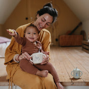 Designed with two handles for little hands to easily hold, our silicone snack cup is perfect for snacking on the go. The soft opening ensures baby's hands can comfortably slide in and out, while keeping food securely inside. This snack cup is a must-have for little ones on the move.
