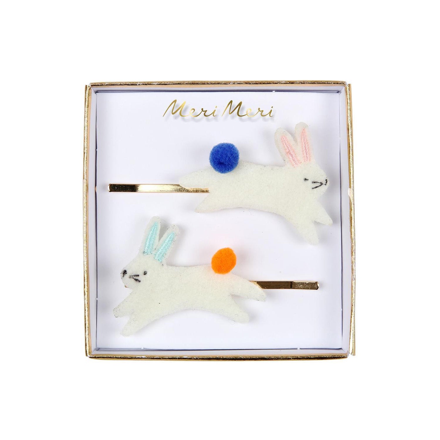 These cute bunny hair slides are perfect to add adorable detail to any hairstyle this Easter and Springtime. Beautifully crafted from white felt, embroidered with stitched details and embellished with sweet pompoms.