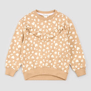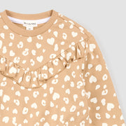 This cozy sweatshirt adds a bold style to everyday wear with its striking leopard print and ruffled trim. Made from organically grown cotton fleece, this sweatshirt is perfect for layering over t-shirts and leggings for extra warmth. Ribbed cuffs provide a snug fit, and the rounded neckline makes over-the-head dressing quick and easy.