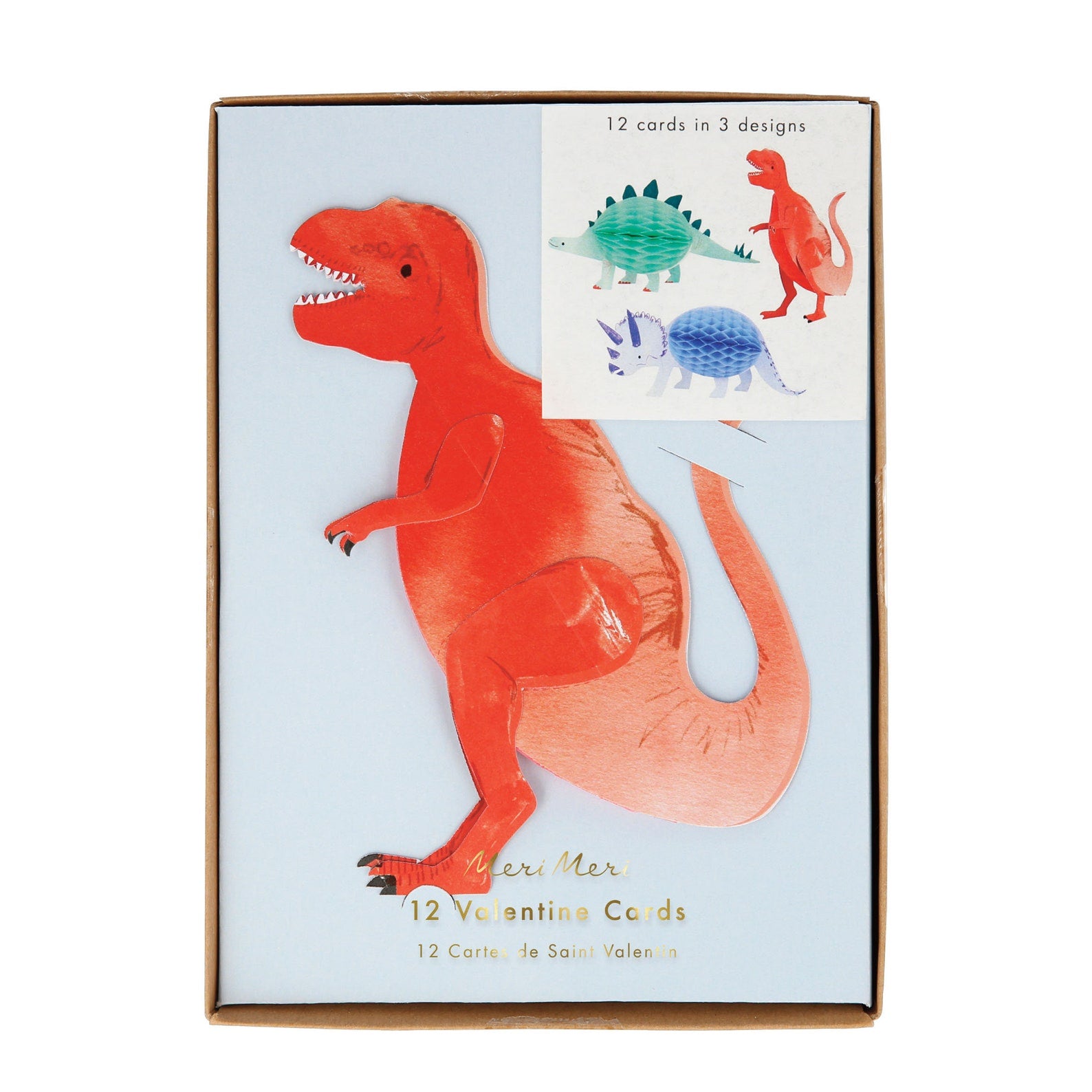 Friends and fellow dino fans will love getting one of these fearsome dinosaur Valentines featuring foldout honeycomb paper tummies. This fabulous set of 12 cards features 3 styles of dinosaurs with envelopes and pun-worthy messages: You are T-RIFFIC, You are TRICERA-TOPS, You are DINO-MITE. Boys and girls alike will be thrilled to get one of these keepsake valentines!