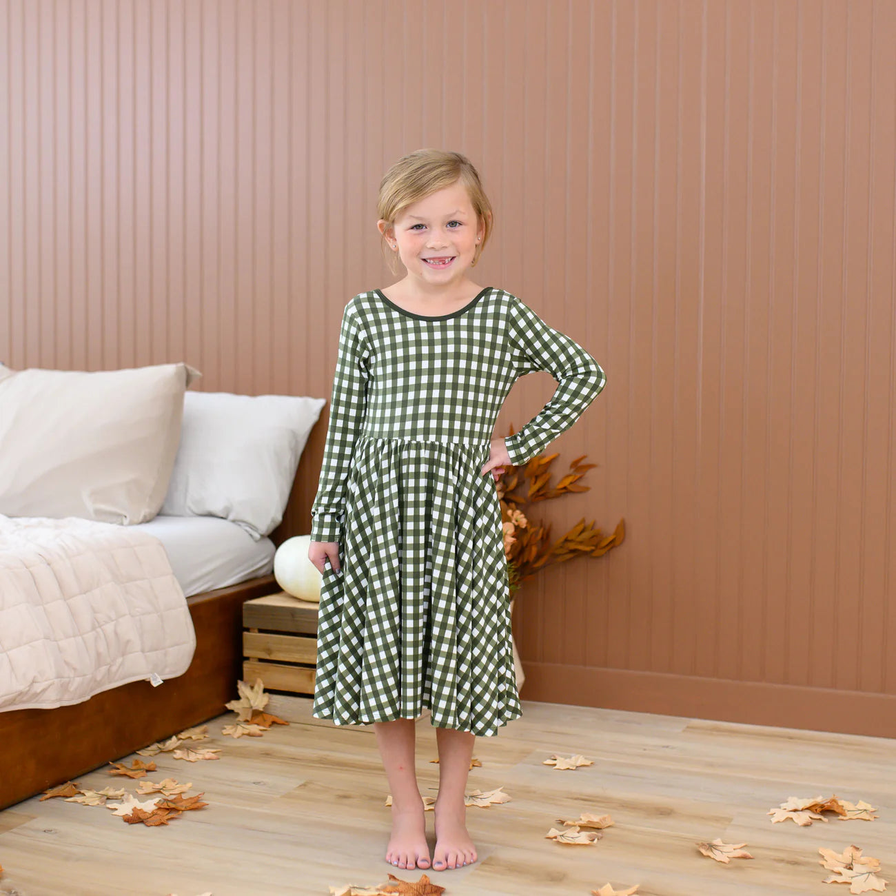 Cut from soft, stretchy bamboo fabric, this twirl dress features a full skirt so your toddler can spin in style. The classic design of the dress can easily be dressed up or down, making it the perfect everyday outfit.