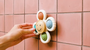 Fidget spinner with suction cup base and four silicone sensory poppers. Highchair toy format designed to entertain baby. Suction cup adheres to smooth surfaces, making for a colorful and engaging sensory toy. Helps build hand-eye coordination. Age grade 0m+