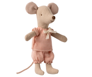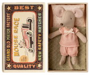 A classic Maileg item, this mouse is ready for hours of play and sleeps soundly in its little matchbox. The clothes and bedding are made of soft fabrics with unique prints in beautiful colors. The mouse has magnets in its hands.