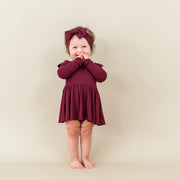 Long Sleeve Twirl Bodysuit Dress- Burgundy