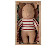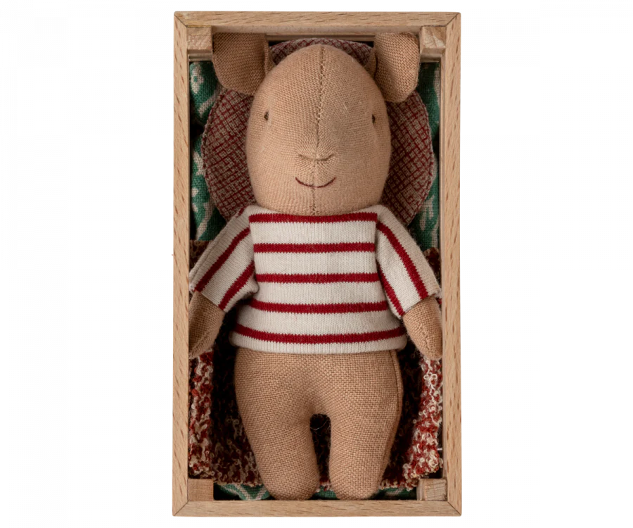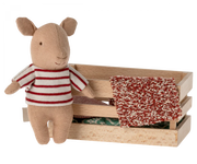 A sweet and cozy playset for imaginations to run wild. This cute little piglet cuddled up in its wooden box with cozy bedding, making a wonderful addition to any story. Add the bigger pigs to expand the playtime!