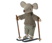 A mouse ready for hours of fun on the slopes during the cold wintertime. Each playset contains a warmly dressed mouse with a pair of ski and poles. A funny detail is the ears which are made so they look like the mouse is wearing ear warmers.