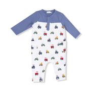 Mini Tractors Romper with Contrast Sleeves