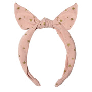 Twinkle twinkle, little star ... do you know how pretty you are? Made from our soft pink cheesecloth and scattered shimmering stars, this head band has a hand tied knotted bow and is designed to provide a comfortable fit for little heads.