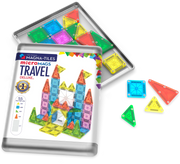 Our original 26-Piece Travel Set was such a sensation that we had to dream bigger! This larger, 55-piece version takes on-the-go play to the next level! Perfect for car rides, vacations, restaurants, and beyond, this set features a convenient travel case so you can bring magnetic fun wherever life takes you. With tiles 75% smaller than traditional MAGNA-TILES, it’s perfectly sized for portability. Fully compatible with all MAGNA-TILES sets, you can seamlessly expand your collection for frustration-free building fun.