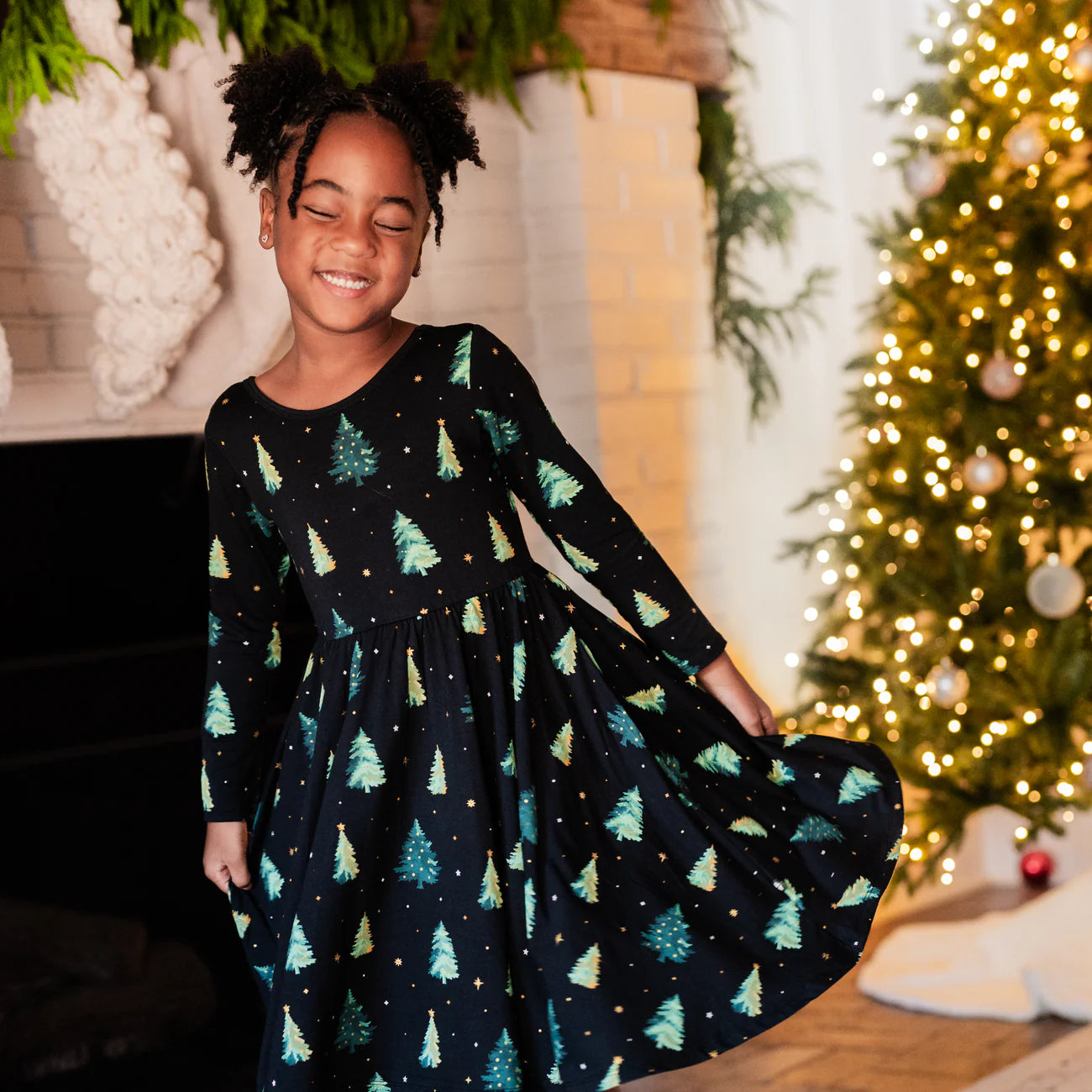 Cut from soft, stretchy bamboo fabric, this twirl dress features a full skirt so your toddler can spin in style. The classic design of the dress can easily be dressed up or down, making it the perfect everyday outfit.