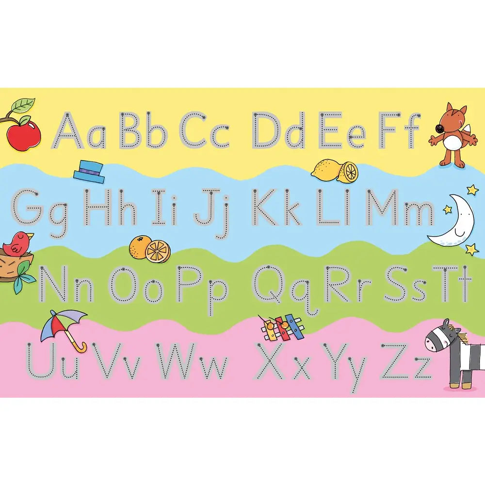 This fun book is a perfect way for children to learn the letters of the alphabet. Engaging scenes with dotted lines invite children to trace over the pictures and letters. With durable, wipe-clean pages that can be used over and over.